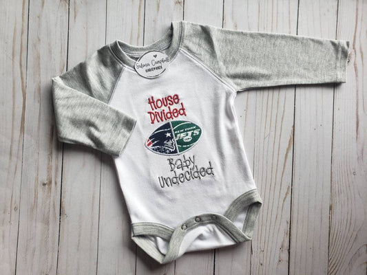 Embroidered House Divided Baby Undecided Football Shirt or Bodysuit • your choice of teams